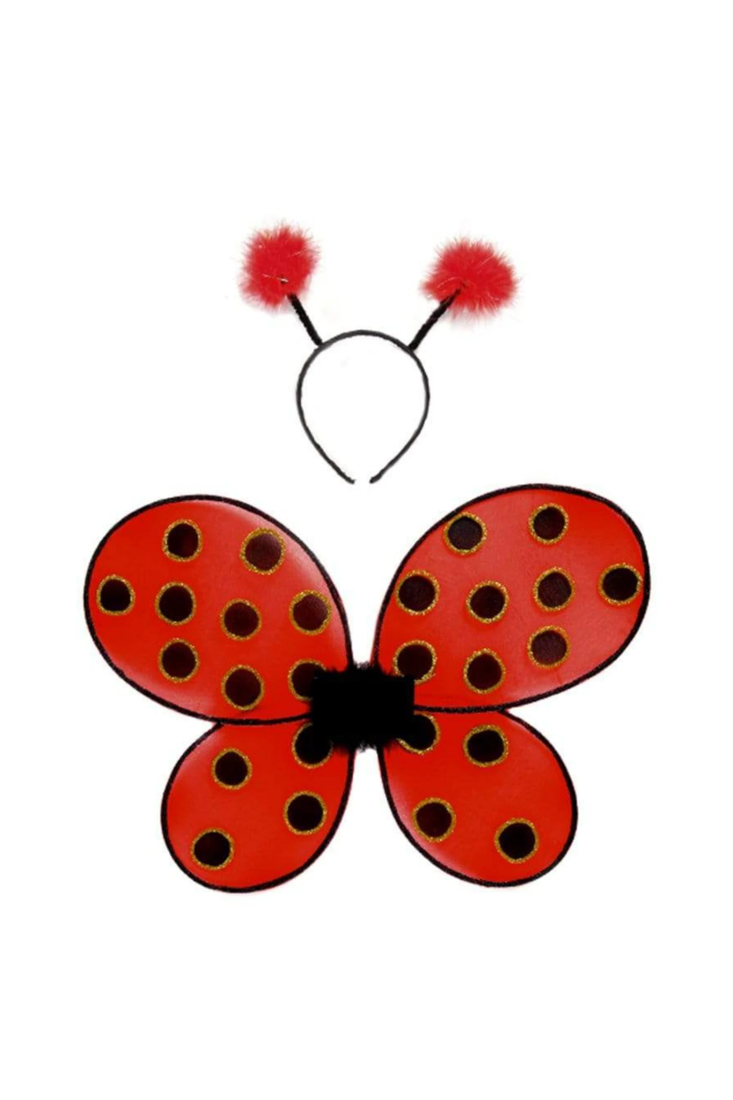 Turn your little one into an adorable ladybug with this wing and headband set. Perfect for fluttering around the backyard and all ladybug adventures. Featuring soft marabou feather accents and gold glitter details, both pieces will have your little one flying around with excitement.