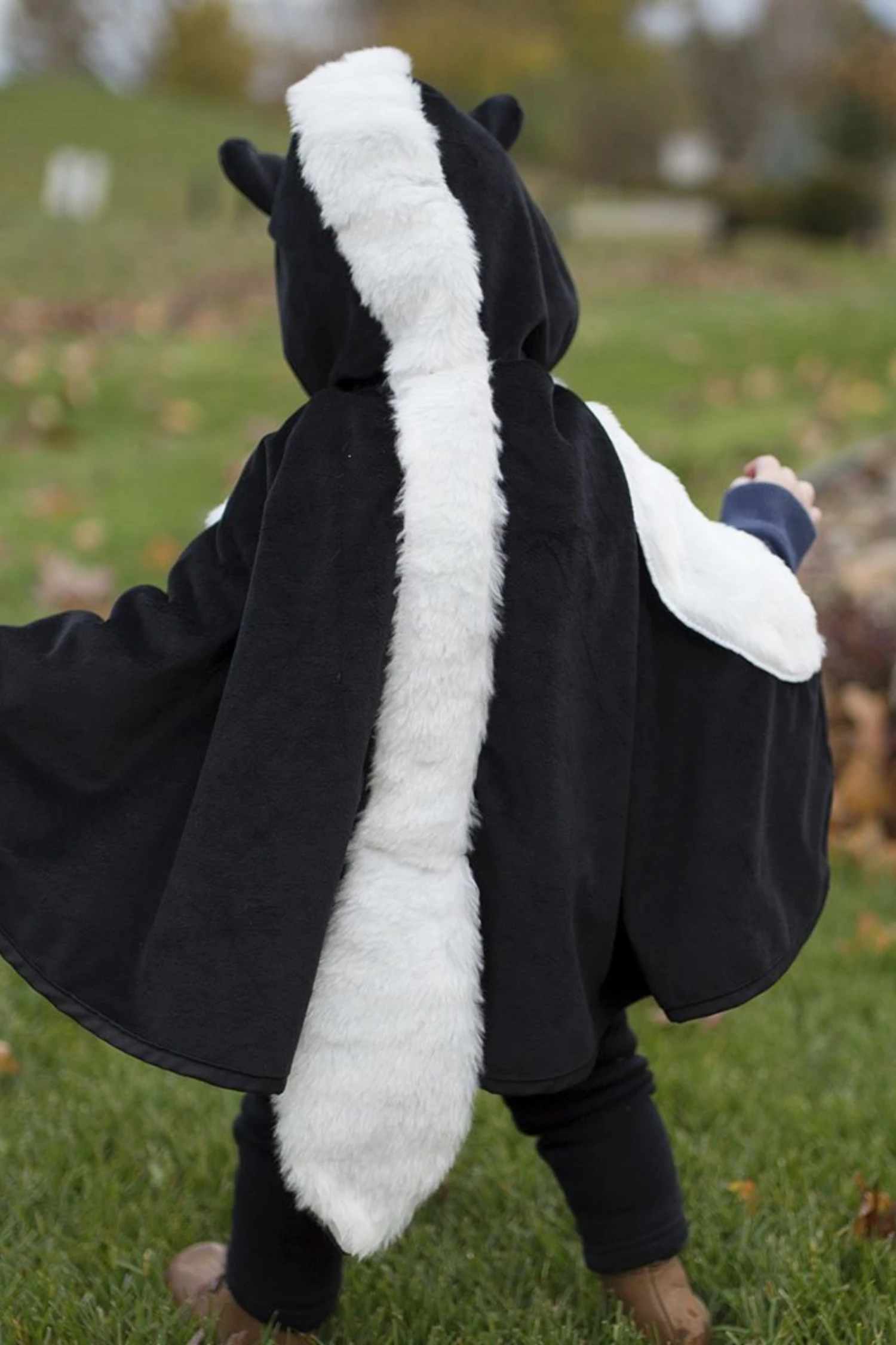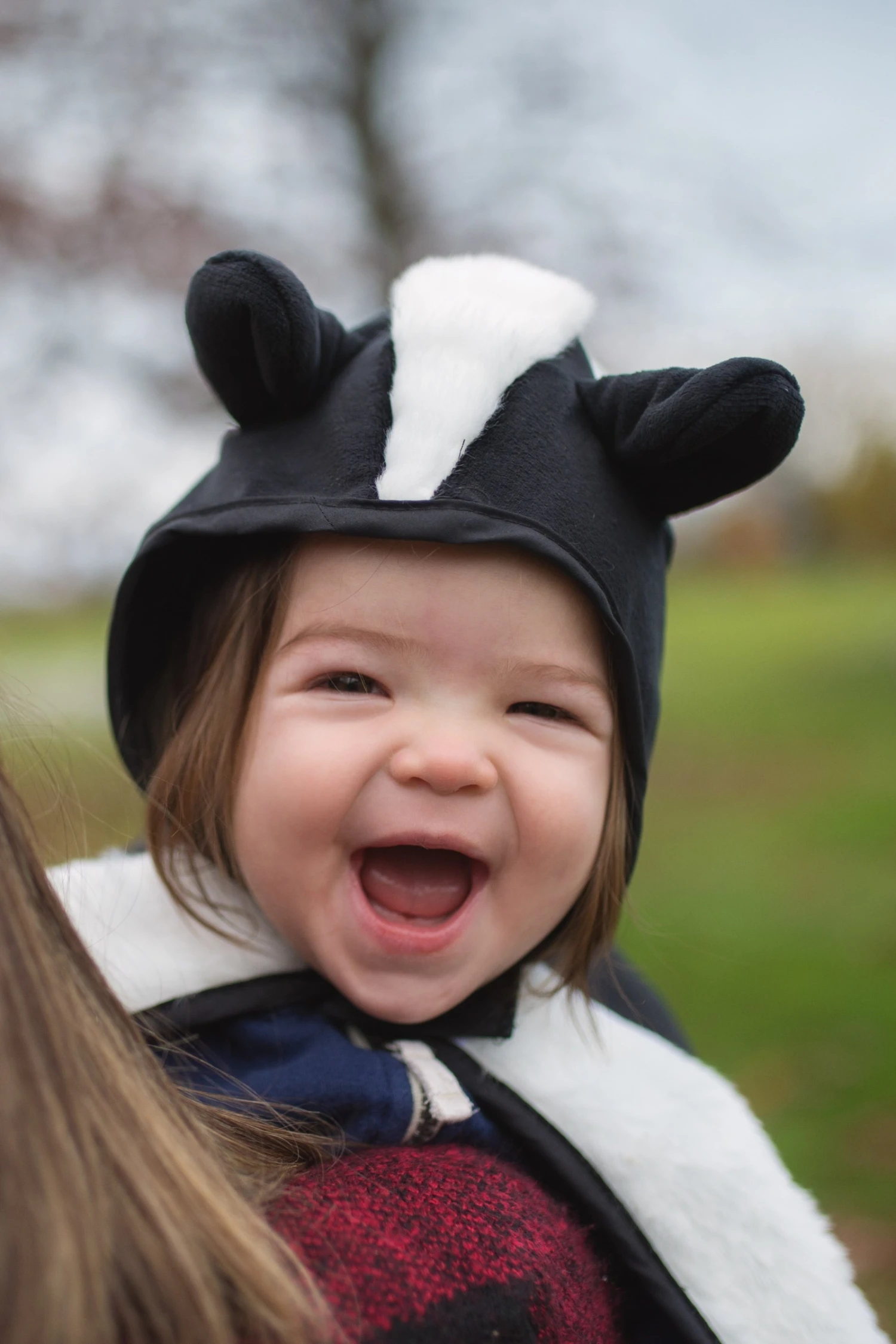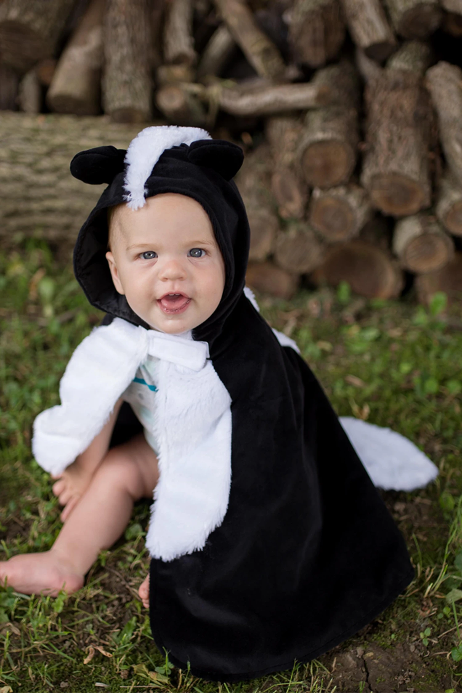 Adorable soft and fluffy baby skunk cape, perfectly cuddly with unmistakable black and white pattern.