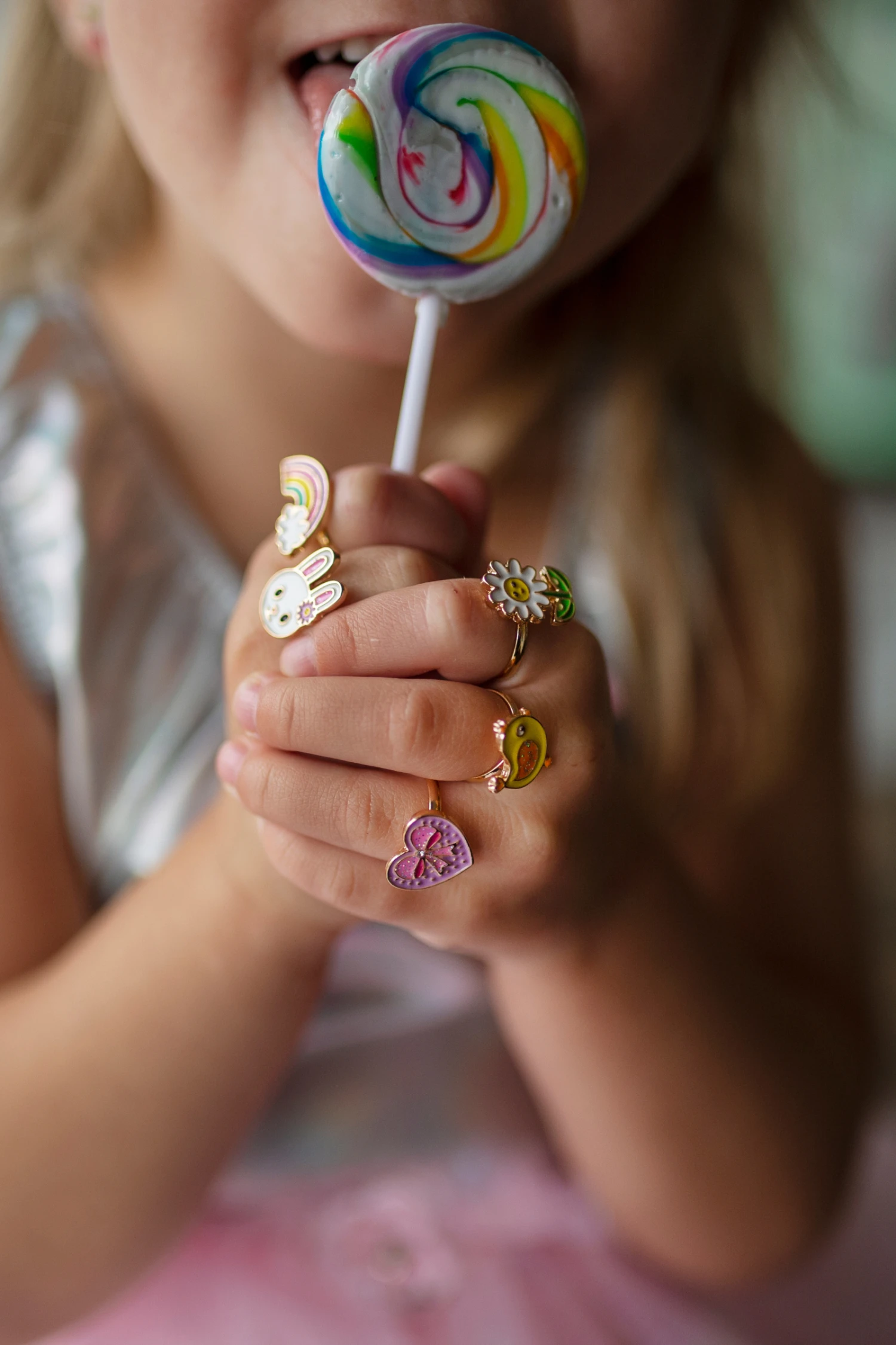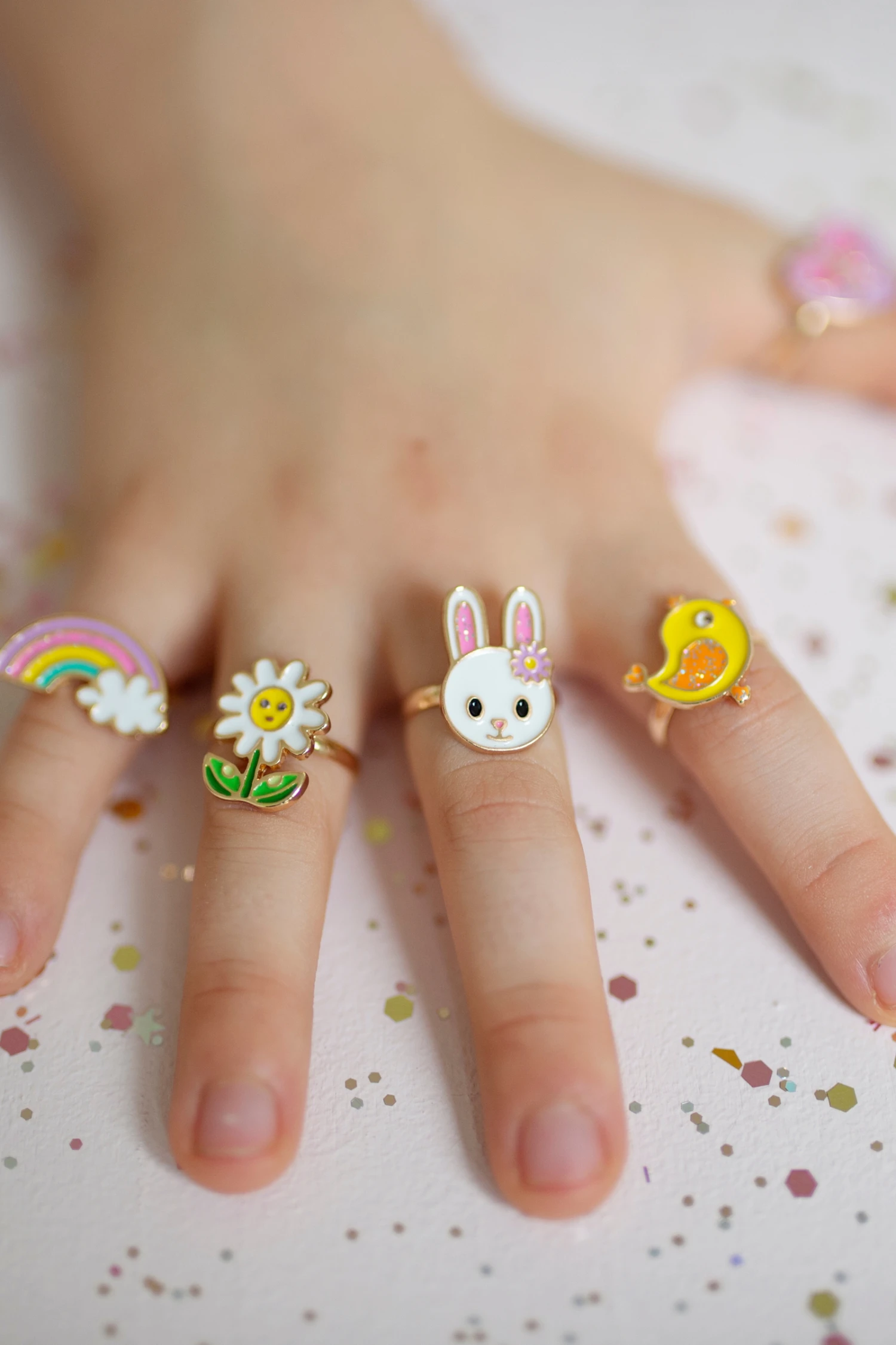 Hop into spring with our adorable 3 piece Spring Ring Bunny Set. Each golden ring features either a chick, bunny, or rainbow design with an adjustable fit!
