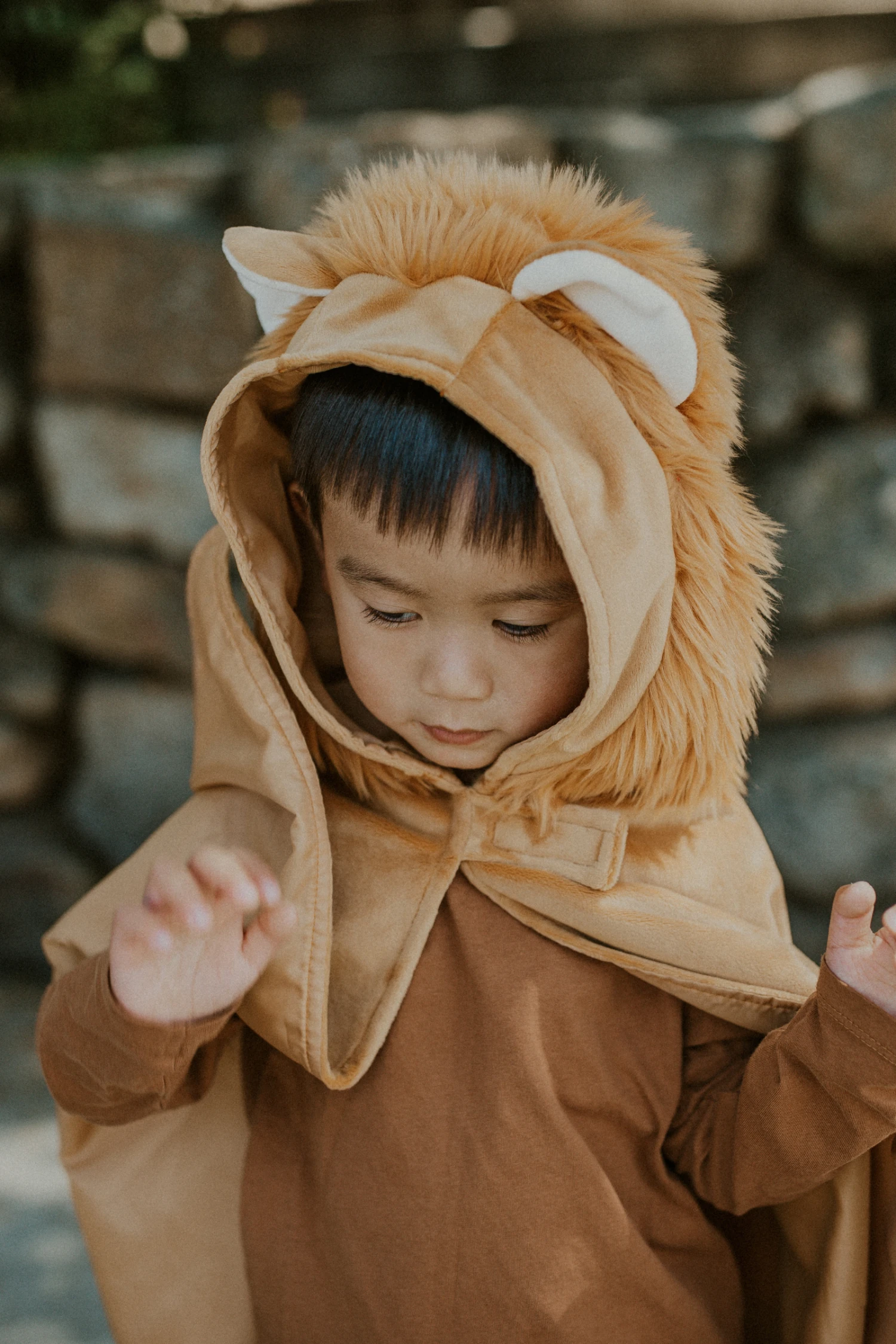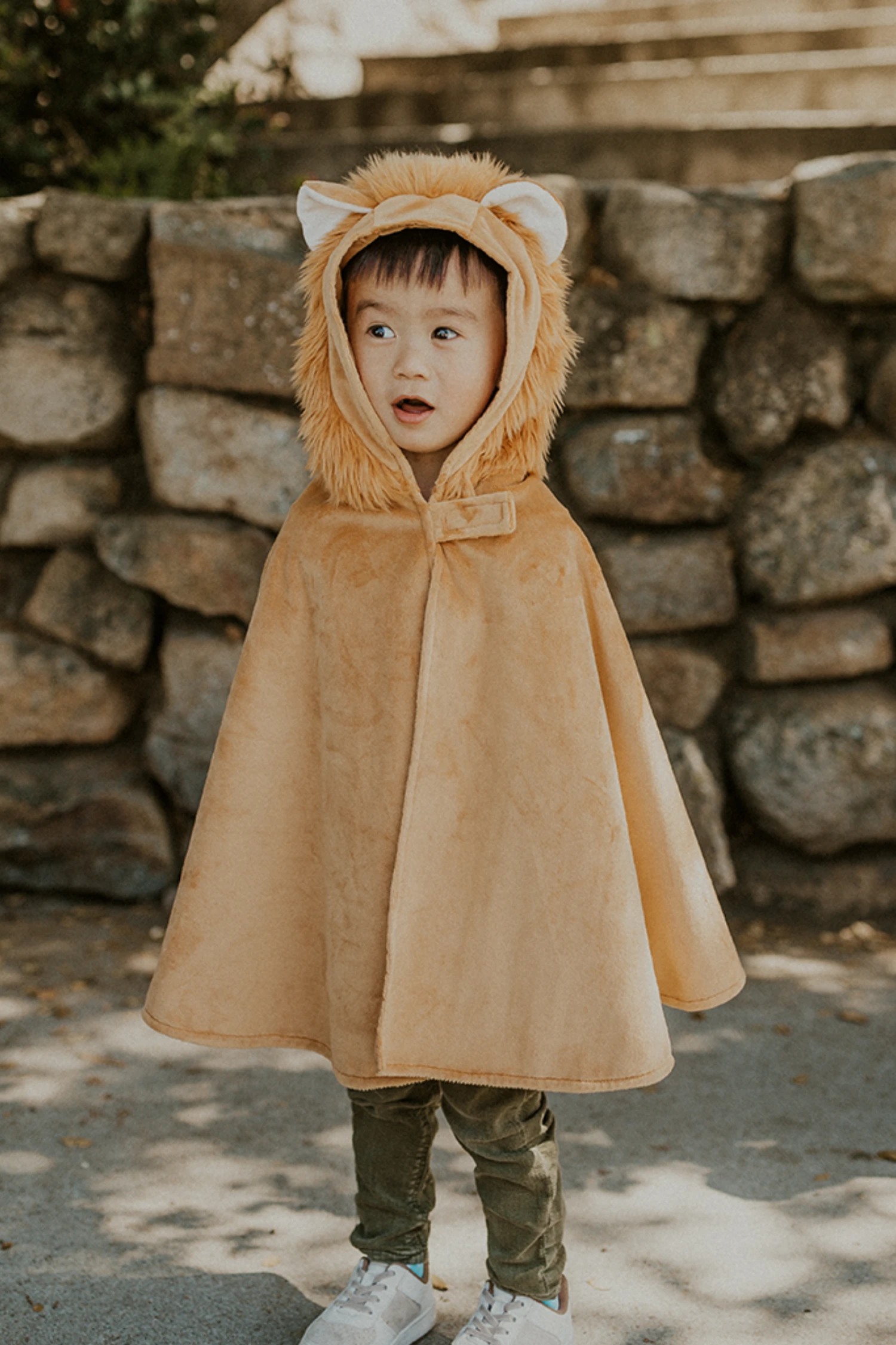 Being the king of the jungle has never been cuter! This adorable lion toddler cape has a wrap around Velcro closure, soft and comfortable material with a full mane ready for all the “roars” at playtime. Two cute ears finish the lion look on the easy on and off hood.